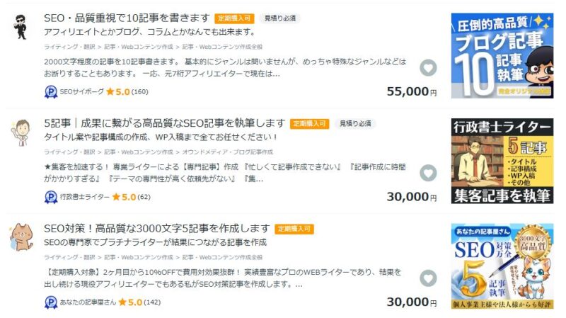 「SEO最適化済み!4,000文字のプロ級の記事を10記事納品します」価格:38,000円