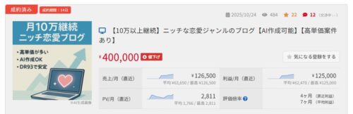 ・資産化ブログを作って半年後には100万円以上で売却したい